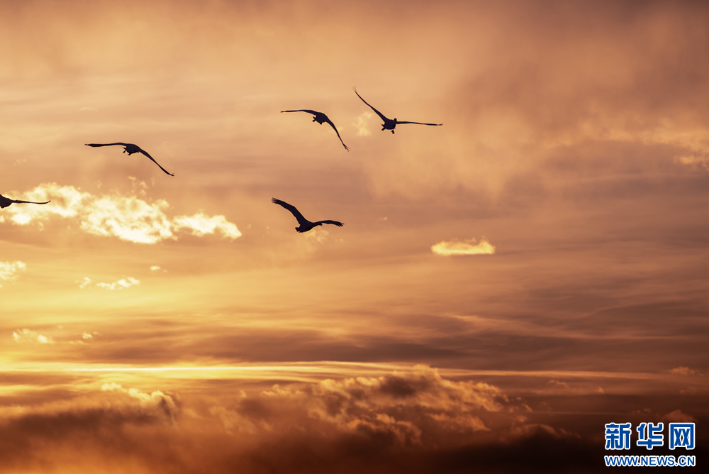 【大美甘肃】甘肃张掖:夕阳下的天鹅群舞-新华网