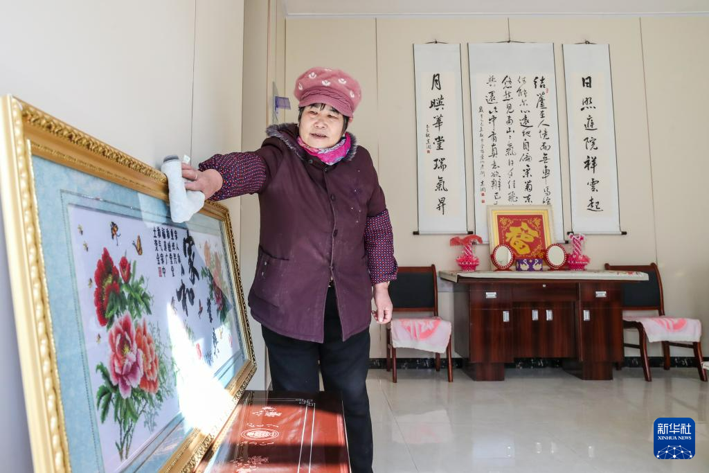12月29日,村民赵玉真在榆中县马坡乡马莲滩村集中安置点的新家里打扫卫生。新华社记者 郎兵兵 摄