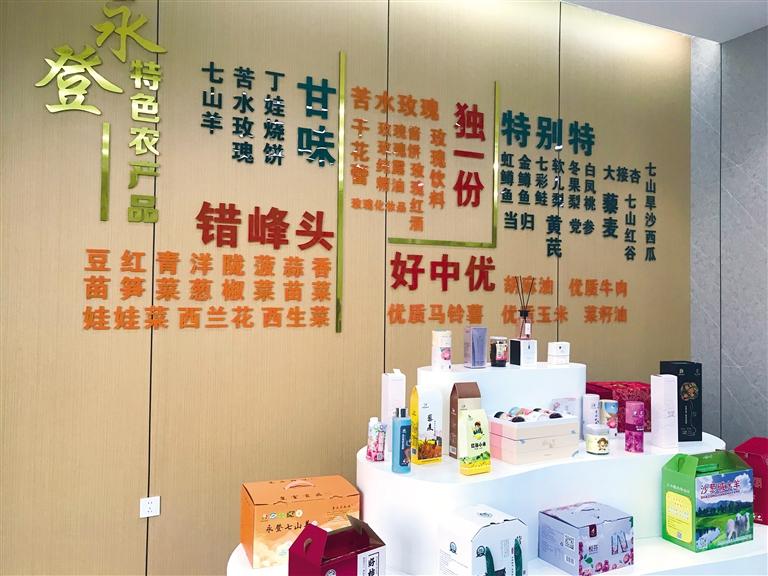 永登农村产权交易中心展示区里陈列着永登特色“甘味”农产品